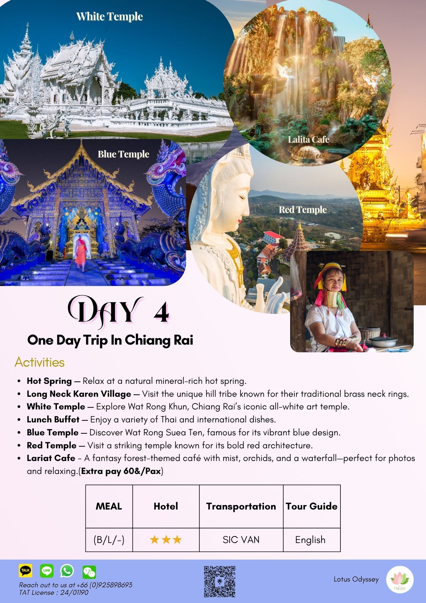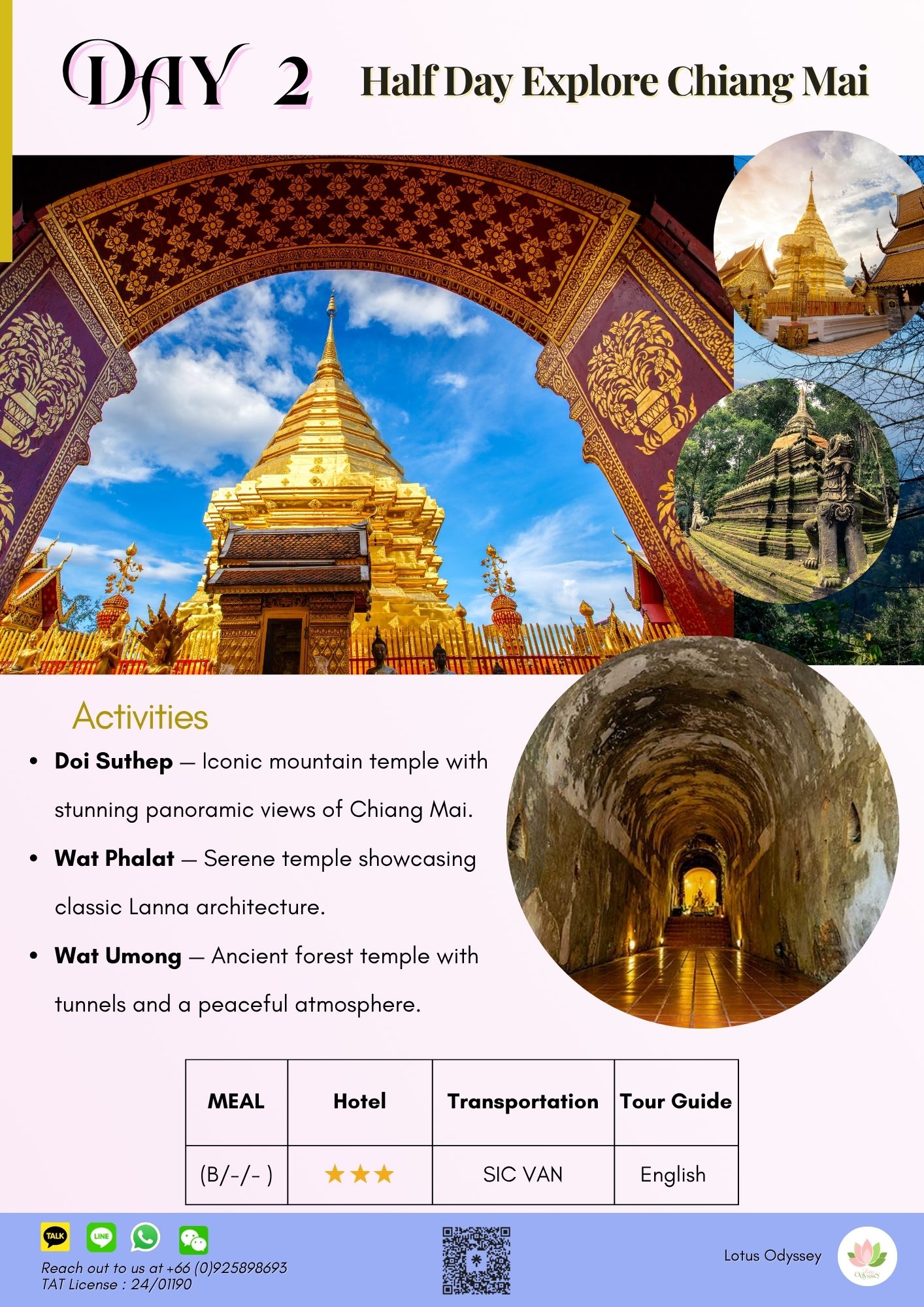 Discover Northern Thailand on a budget with our 5D4N Chiang Mai & Chiang Rai package! Visit iconic temples and take in stunning mountain views, all with comfortable accommodations and guided transport included. Perfect for travelers looking to experience the magic of the north without breaking the bank!